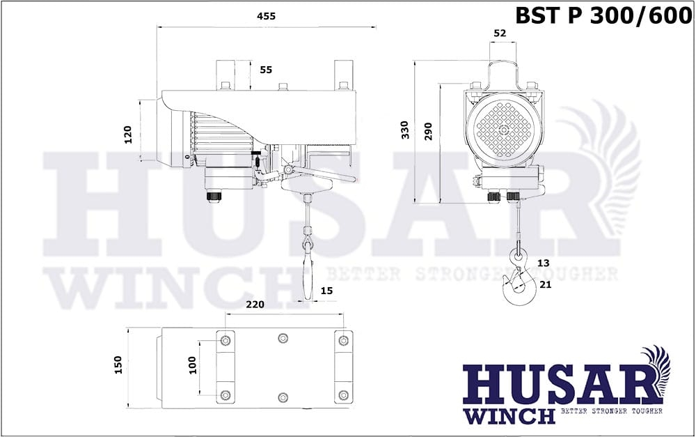 Produkt:  El-spil Husar Winch Værksted/Loft spil med stålwire 300/600