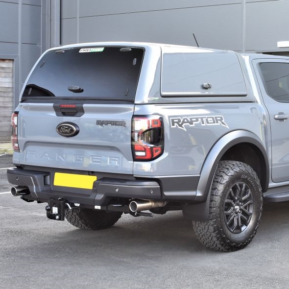 Hardtop fra ProTop Gullwing med pop-up vinduer og glas i bagruden lakeret i bilens originalfarve til Ford Ranger Raptor D/C Årgang 2023+