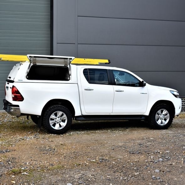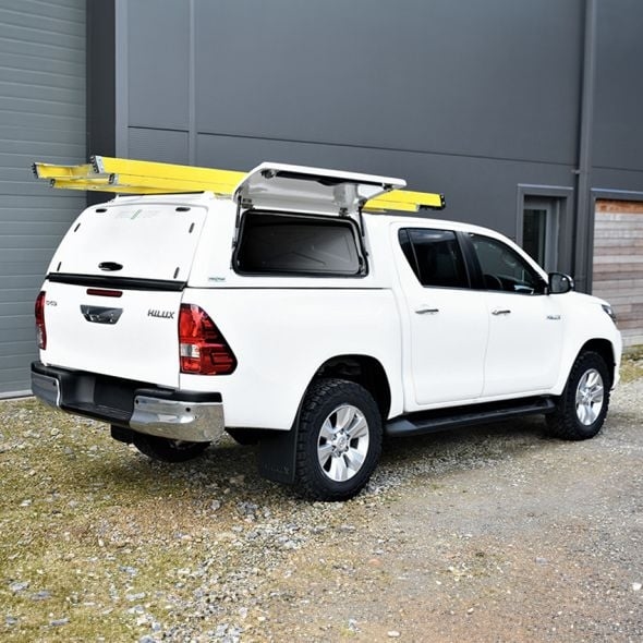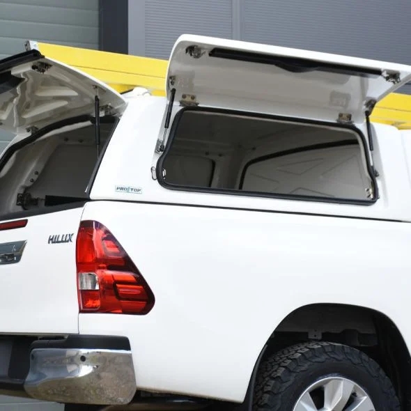 Hardtop fra ProTop Gullwing med solid bagdør lakeret i køretøjets originalfarve til Toyota Hilux D/C Årgang 2021+