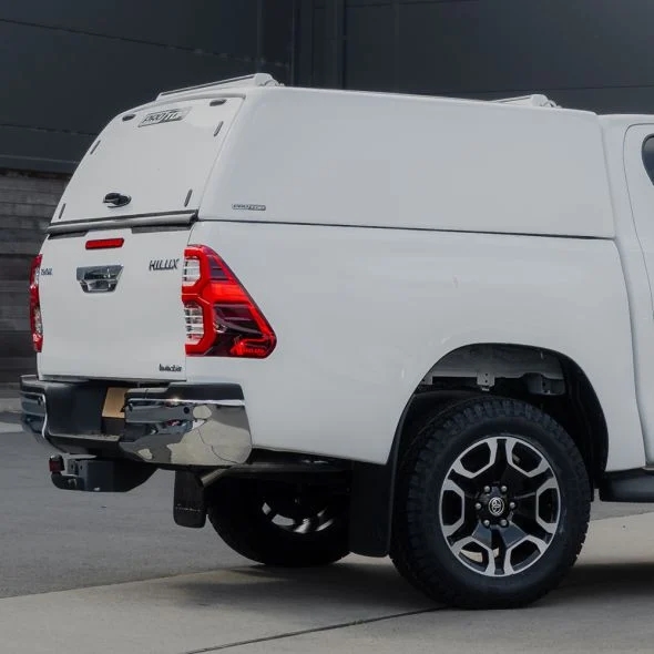 Hardtop fra ProTop Tradesman kompatibel med Roof Rack lakeret i bilens originalfarve solid bagdør til Toyota Hilux D/C Årgang 2021+