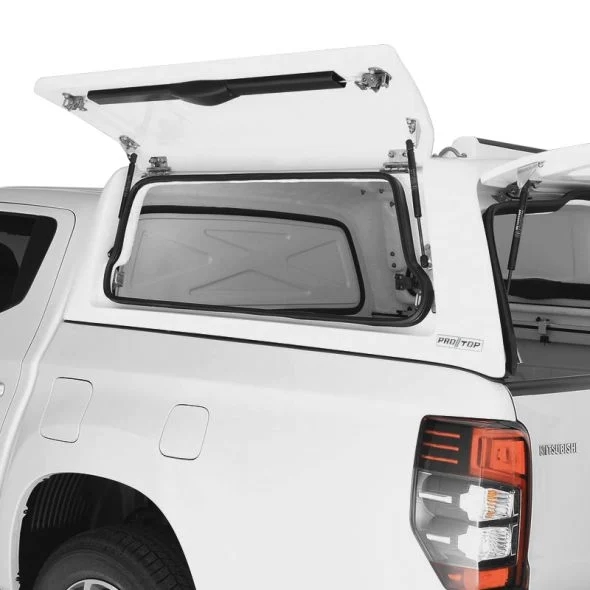 Hardtop fra ProTop Gullwing med solid bagdør lakeret i W32 Hvid til Mitsubishi L200 D/C Årgang 2019-2021
