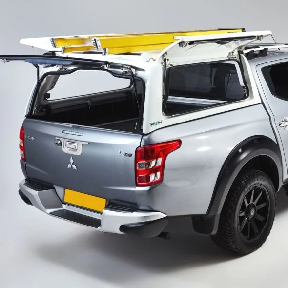 Hardtop fra ProTop Gullwing med glas i bagdør lakeret i W32 Hvid til Mitsubishi L200 D/C Årgang 2015-2019