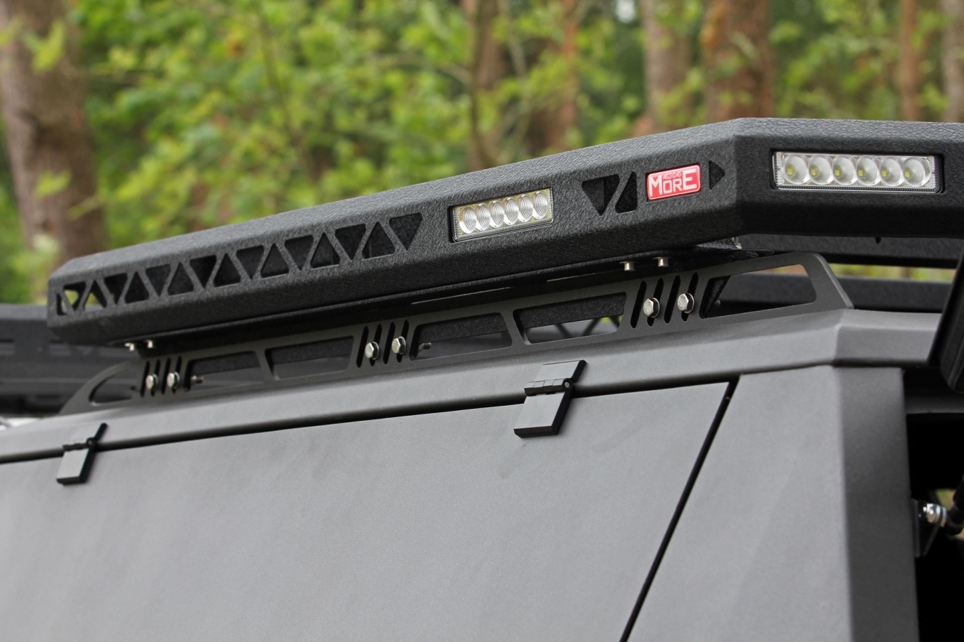 Produceret i 3 mm aluminium. Hardtoppens øvre kant og kraftige hjørnestænger giver en stærk base til montering af tagbøjler eller tagtelte. For at lette monteringen af ​​tagbagagebærere og/eller tagtelte på hardtoppen, er den forsynet med skinner med monteringshuller, der muliggør op-ned justering af de skruede elementer.