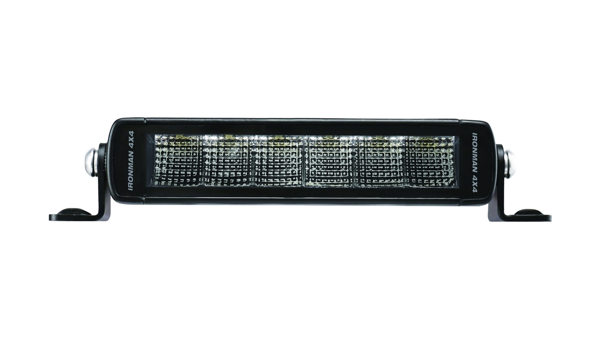 Ironman 4x4 LED-bar giver meget lys med et lavet strømforbrug. "State of the art" lygte med kraftige Combo lysdioder med Osram LED chip, som giver den maksimale lysspredning. Ironman4x4 har ved hjælp af den nyeste teknologi udviklet en ny serie af LED-lygter. Bright Sabre serien har de nyudviklede "hood" reflektorer til LED'erne. Hvorfor er dette vigtigt? Sammenlignet med traditionelle lys giver disse reflektorer en mere vandret stråle med et midtfeltsfokus. Dette gør dem ideelle til at køre, hvor der er brug for meget lys og har mest brug for det! Den nye teknologi gør, at lygterne lyser endnu længere samtidig med et mindre strømforbrug. De nye LED barer er ideel til montering på tagbagagebærer, -bøjle eller bull bar.