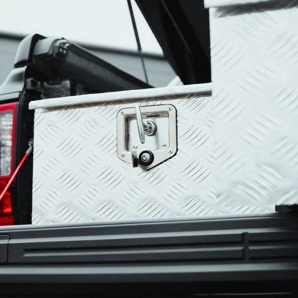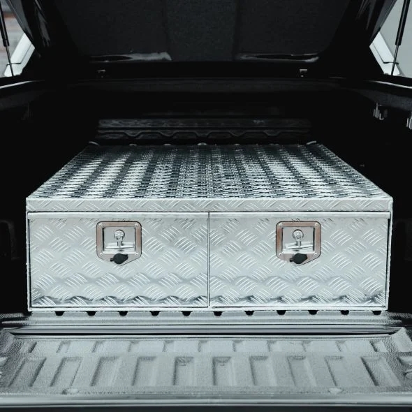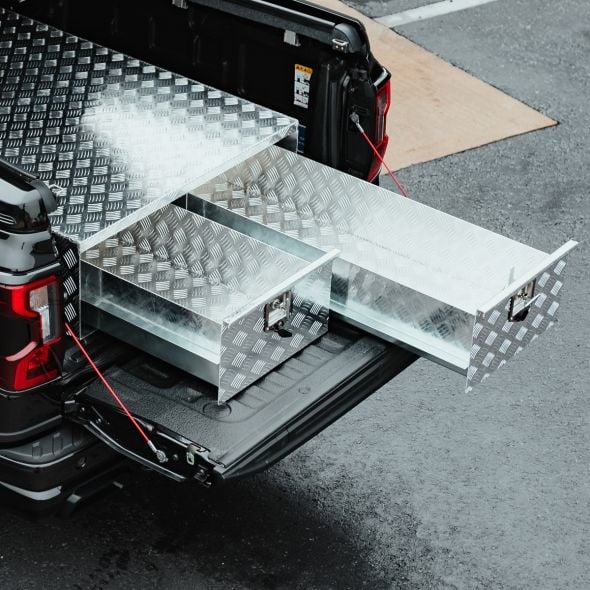Opbevaringssystem til pickup-lad med to skuffer i aluminium
