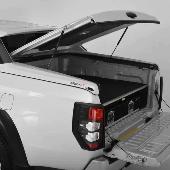 En jævn ubesværet åbning/lukning understøttet af kraftige dobbelte gascylindre og centrallås sikrer nem betjening, og at godset forbliver sikkert og er sikkert og ude af syne. Fuldstændig vejrbestandig.