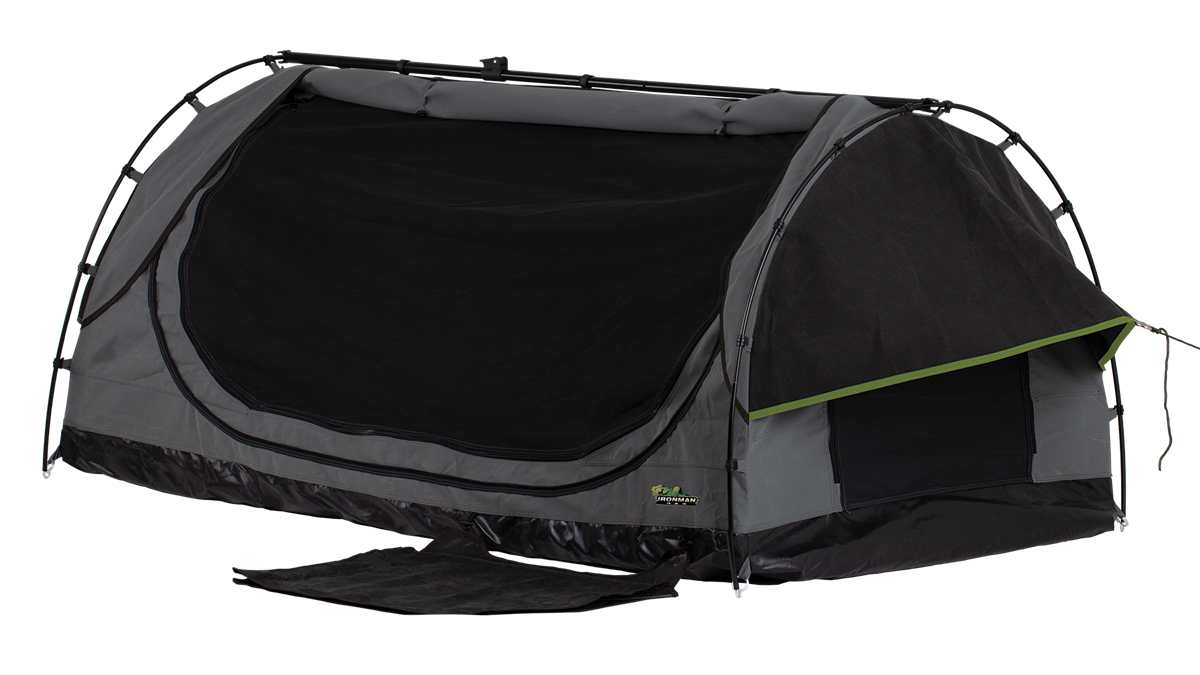 Ridge Pole Swag fra Ironman er i et helt nyt design; den har bevæget sig væk fra tre-bøjle-konceptet til en forenklet to-bøjle system med midterkantstang. Det er ikke et nyt koncept, men det forenkler opsætning og nedpakning, og giver mere plads.