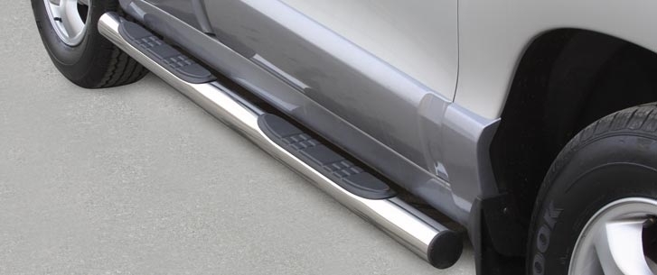 Side bars med indbygget trin, produceret i poleret 76mm rustfri stålrør i særdeles god kvalitet.