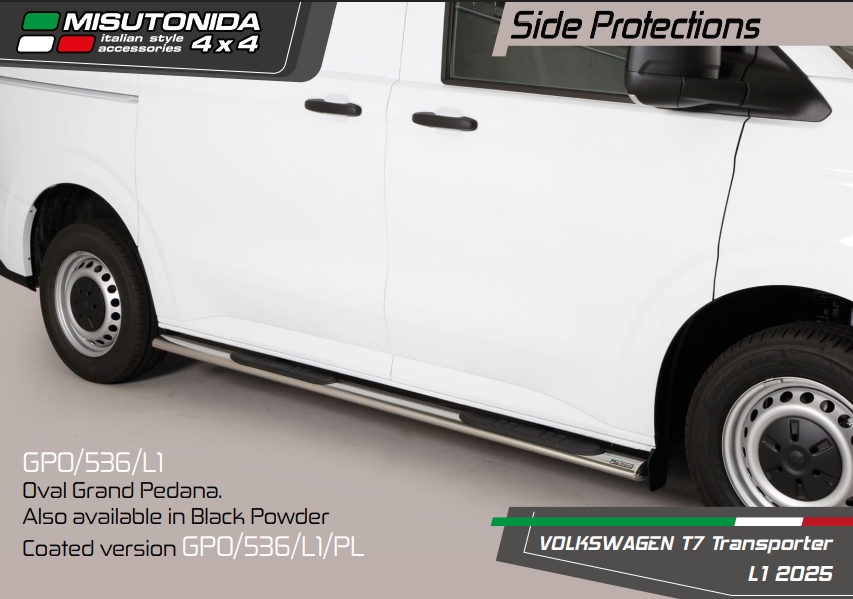 Side bars med trin i rustfri stål - Blank til VW T7 Årgang 2025+
