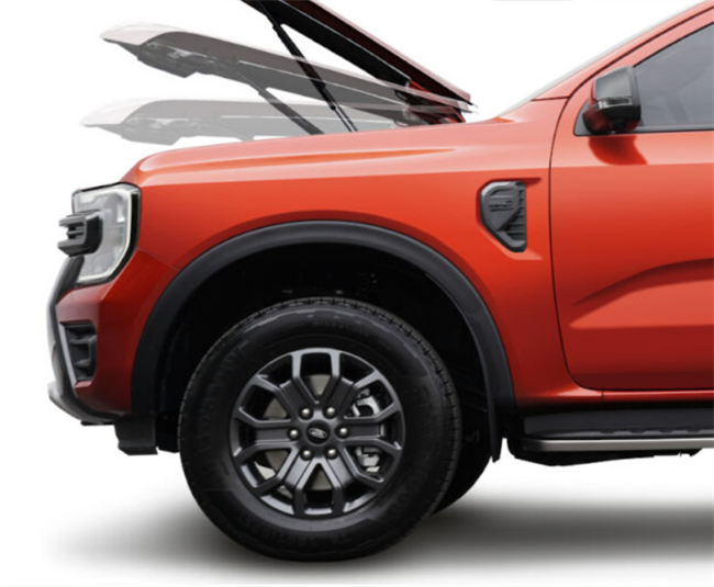 Støddæmper fra Aeroklas til motorhjelm på Ford Ranger Årgang 2023+