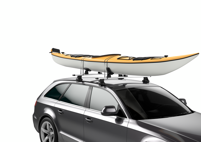 Kajakken kan nemt sættes på og tages af takket være de drejelige bagsadler polstret med filt, der gør det nemt at styre og centrere kajakken på køretøjet.