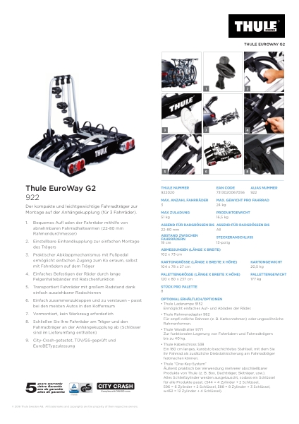 Produkt:  Thule EuroWay G2 3-cykel platform cykelholder
