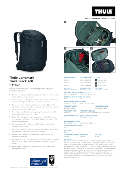 Produkt:  Thule Landmark rygsæk 40 L mørkeblå