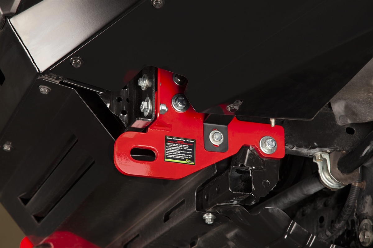 Pulverlakeret rødt for let at identificere - især når de er dækket af snavs og mudder, gør Ironman4x4 recovery points nemme at finde.